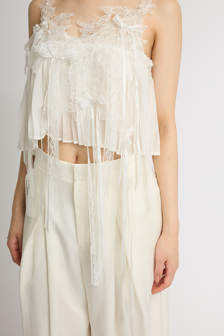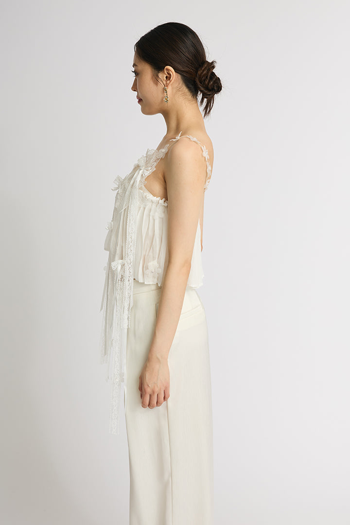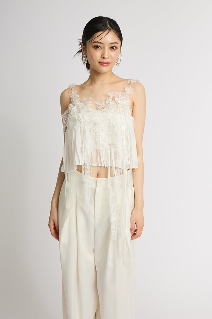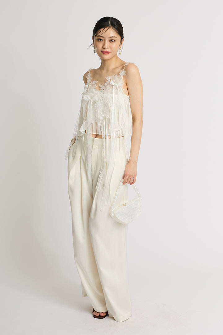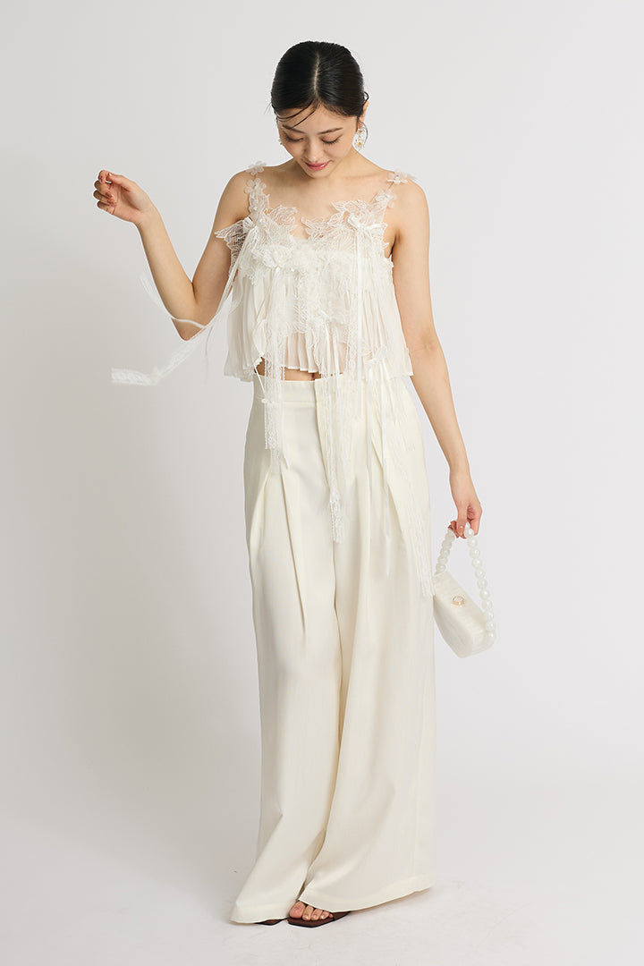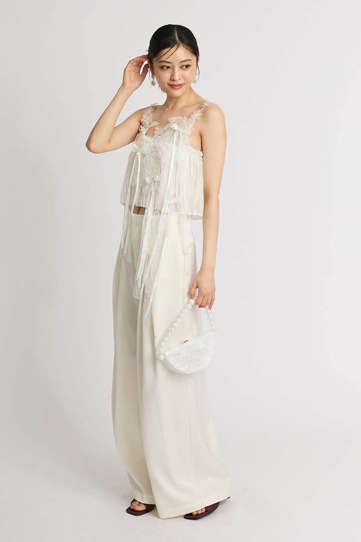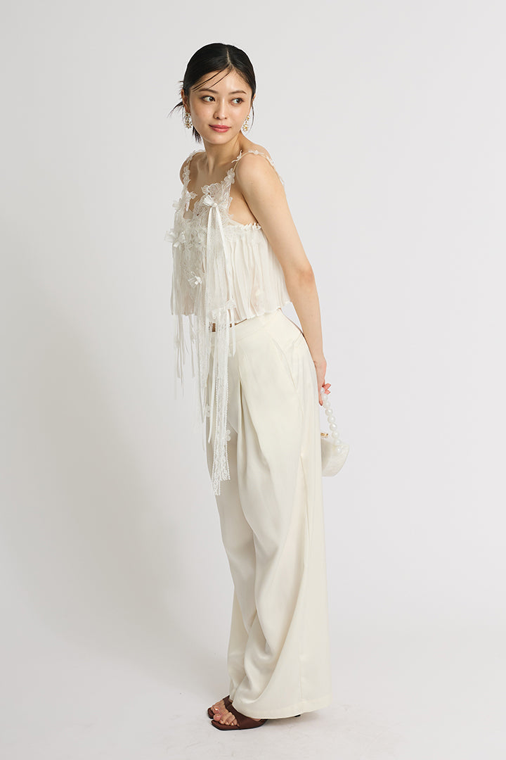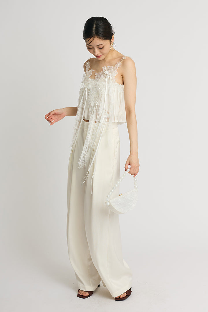 【SET】フラワーレースキャミ+サテンワイドパンツ(2set)