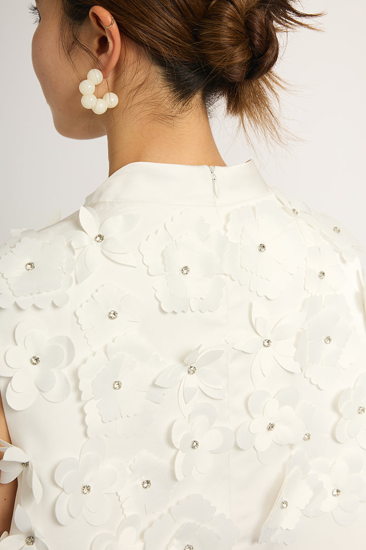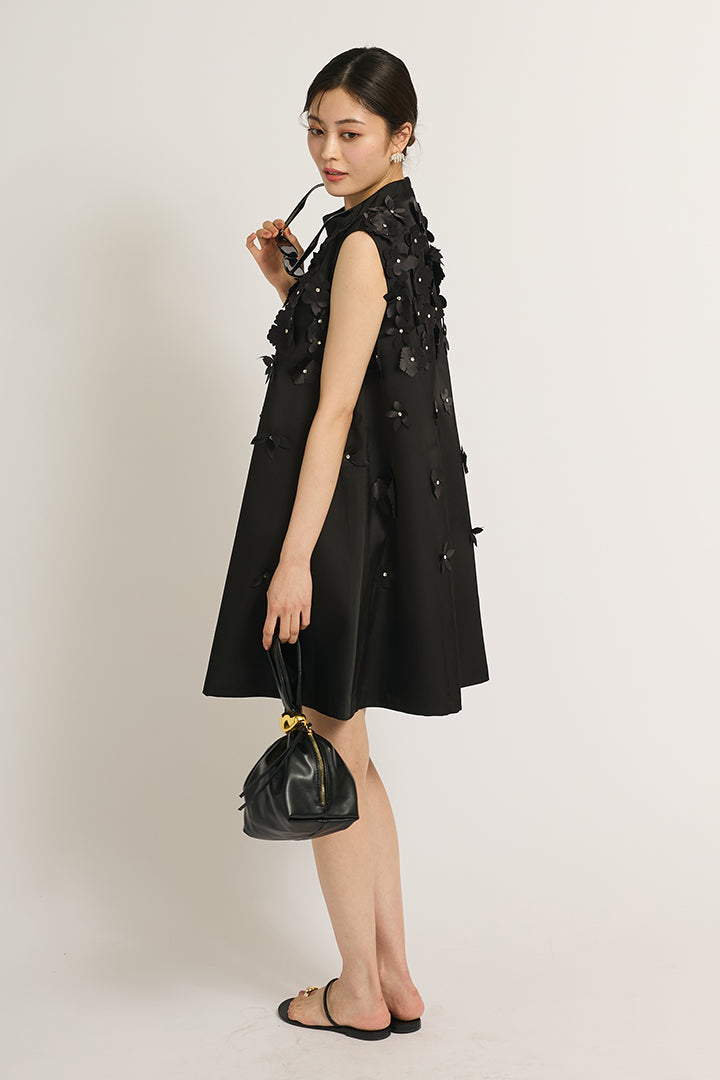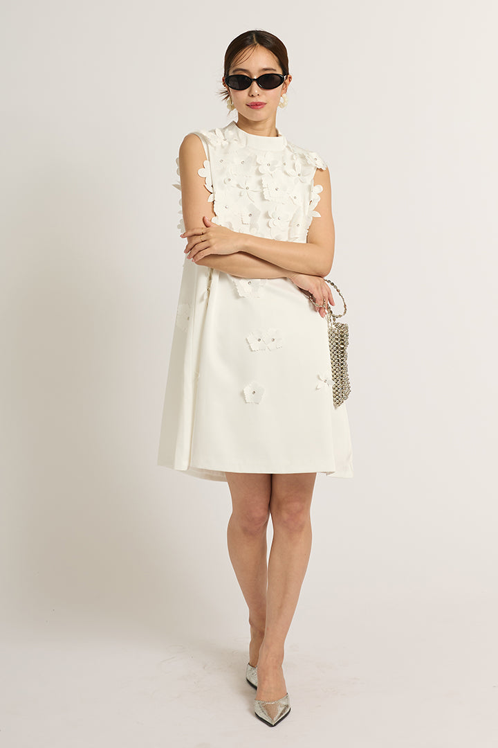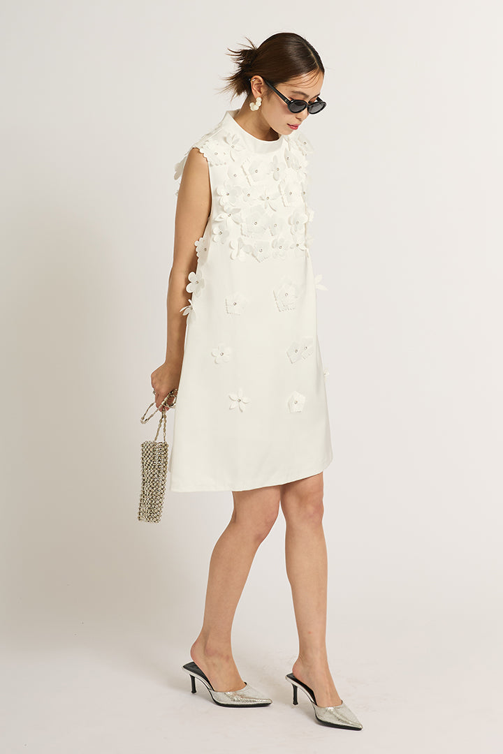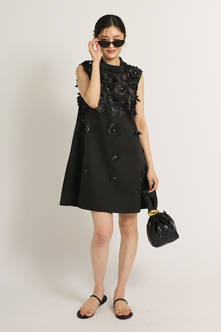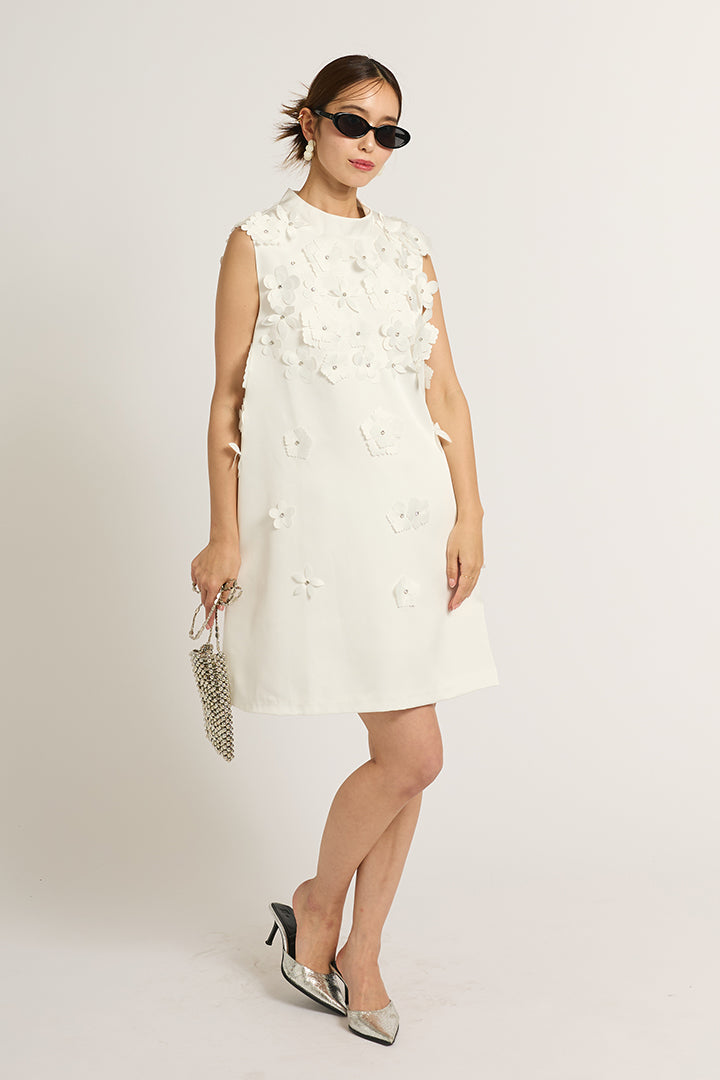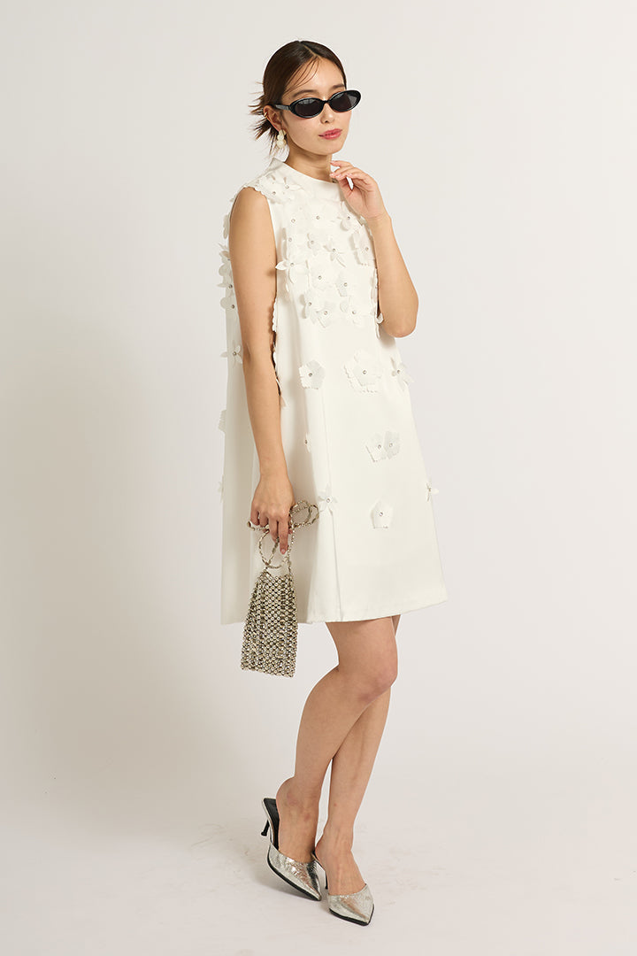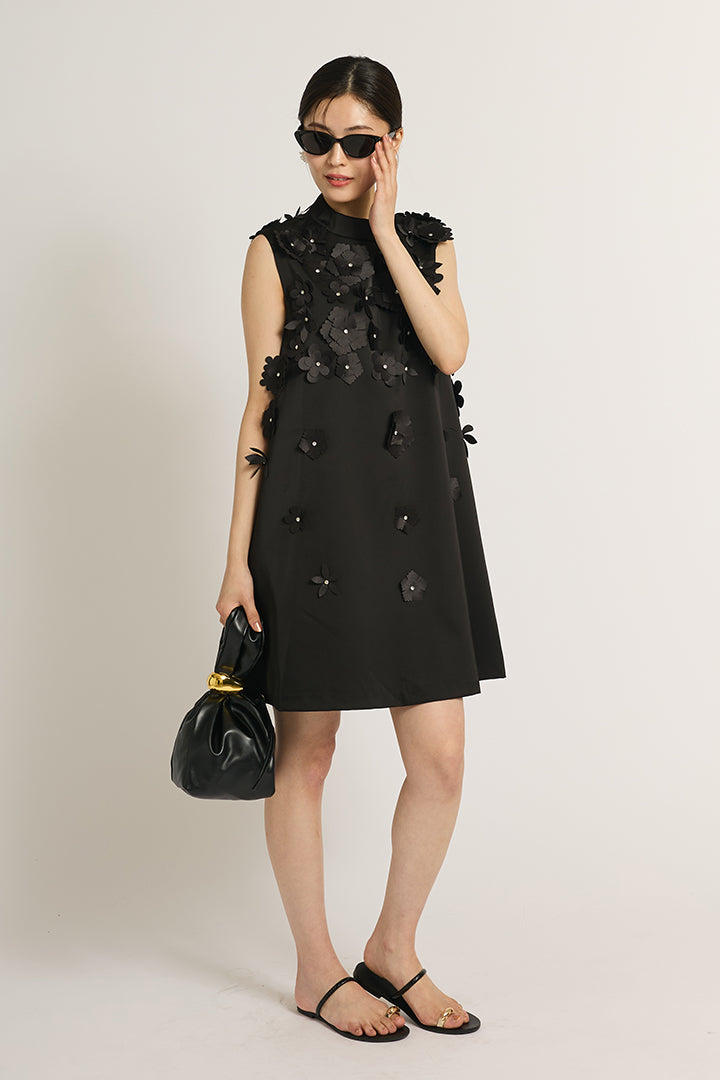 大胆にあしらわれた立体フラワーモチーフが視線を惹きつける、存在感抜群のミニドレス。 コクーンのようなシルエットで体のラインを拾わず、抜け感とモード感を両立した一枚です。 上品で可愛らしいベビーピンクのカラーに、遊び心のあるフラワーディテールが華やかさをプラス。 シンプルなアクセサリーやサングラスと合わせて、パーティーからアートイベントまで映える着こなしが完成します。 主役感たっぷりなのにリラックスして着られる、そんな“可愛いだけじゃない”大人のピンクドレスです。